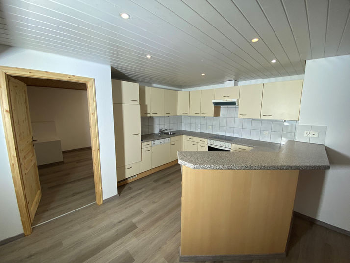 Renovierte 3-Zimmer-Wohnung (90 m²) im 1. Stock in Les Genevez JU zu vermieten. Sonnige Lage mit großem Grünbereich, moderner Küche, eigenem Waschraum und Fahrradabstellplatz. Wandern und Radwege in der Nähe.